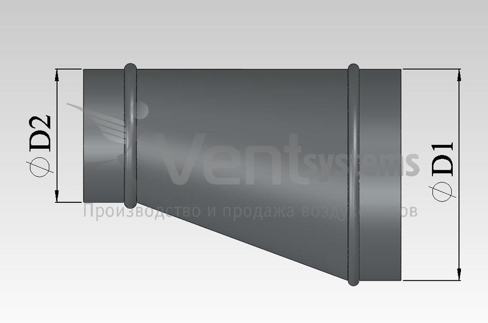 Данный переход стыкует круглые воздуховоды разного диаметра. Смещение является односторонним.