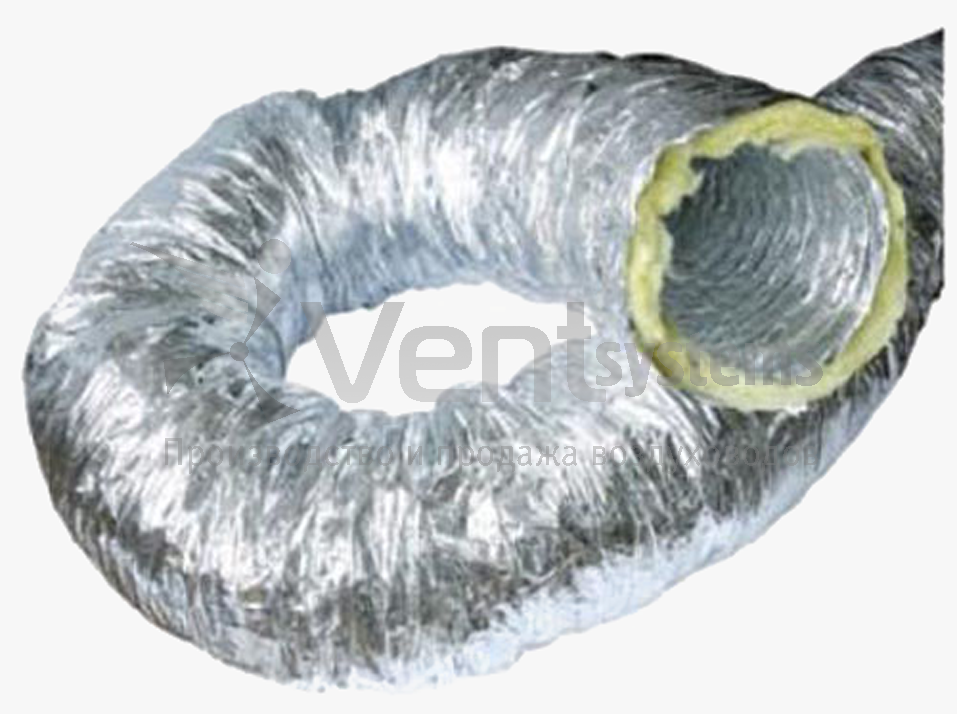 Теплоизоляция гибкого воздуховода позволяет сохранять температуру и полноценно функционировать в морозную погоду. Сводится к минимуму вероятность появления конденсата. Также сохраняется температура воздушного потока - он не остывает, проходя через воздуховод.